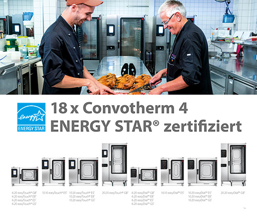 Eglfing, Germany . - The efficiency and sustainability of the Convotherm 4 combi oven has once again been affirmed through ENERGY STAR®. Convotherm offers a total of 18 combi oven models with the ENERGY STAR® certification, making it the manufacturer with the most certifications in the product category. The Convotherm models include 6.20, 10.10, 10.20 and 20.20 models both in Gas and Electric models featuring easyDial™ or easyTouch® control panels. ENERGY STAR® is an international labelling programme for energy-saving appliances which was started in 1992 by the U.S. Environmental Protection Agency (EPA).